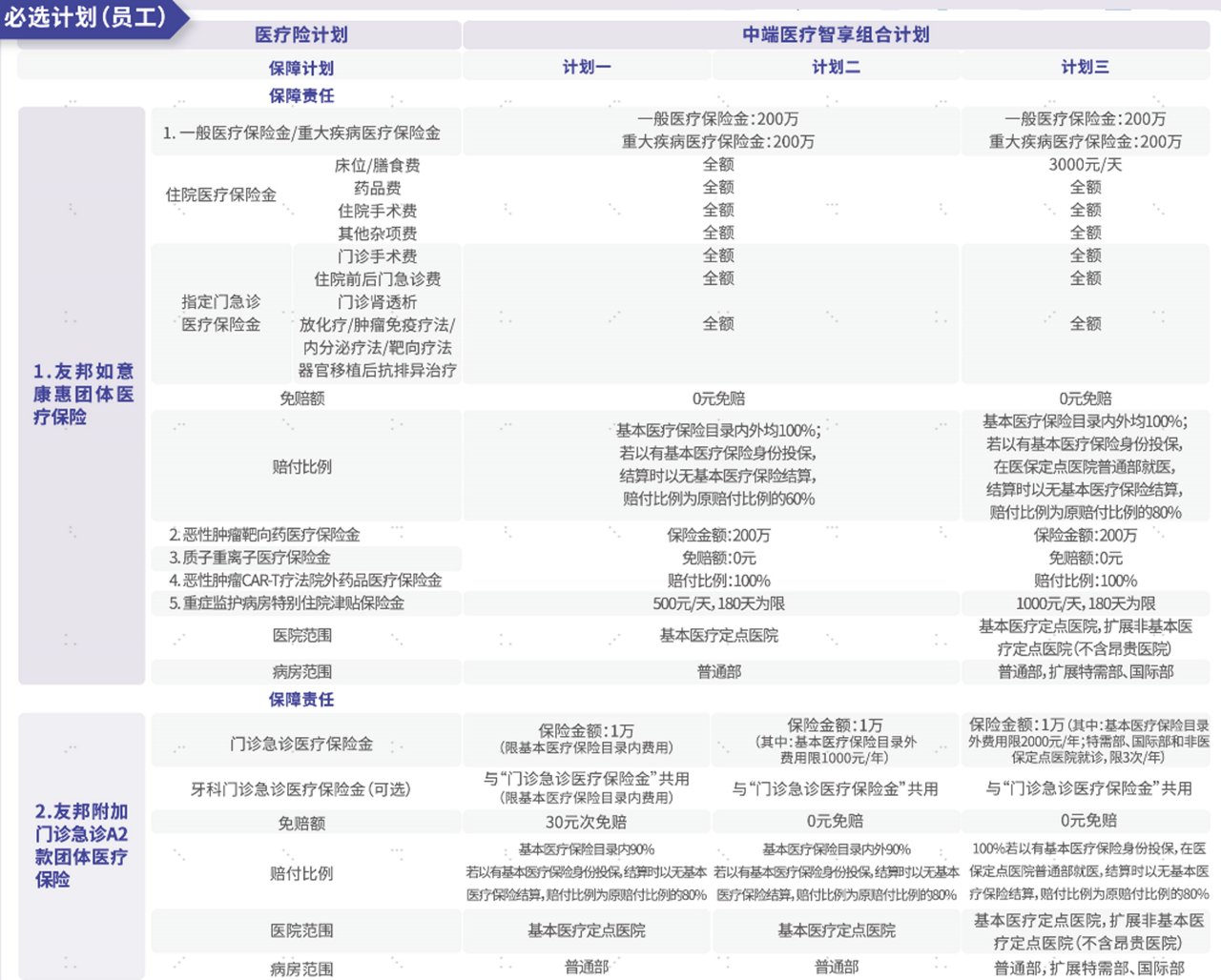 门急诊/住院、重大疾病医疗、可选牙科门急诊、ICU住院津贴、质子重离子、Car-t、靶向药