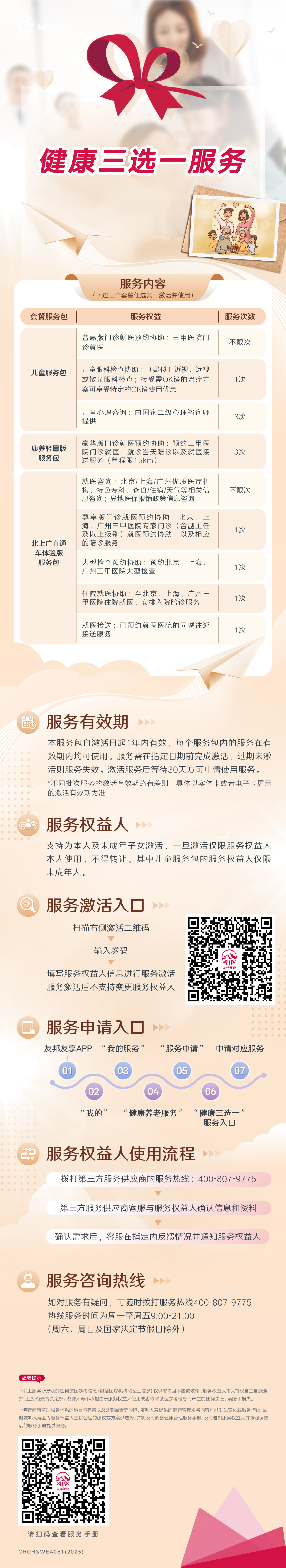 | 友邦友如意星享版(2025)重大疾病保险 | 健康咨询、就医服务 | |
